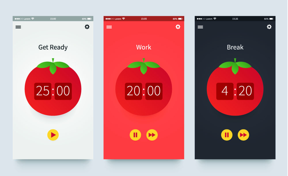 2. Разбиваем всю работу на «помидорки» – промежутки по 30 минут, из которых 25 минут – рабочие и 5 минут – перерыв. После четырёх «помидорок» – перерыв 15-30 минут.